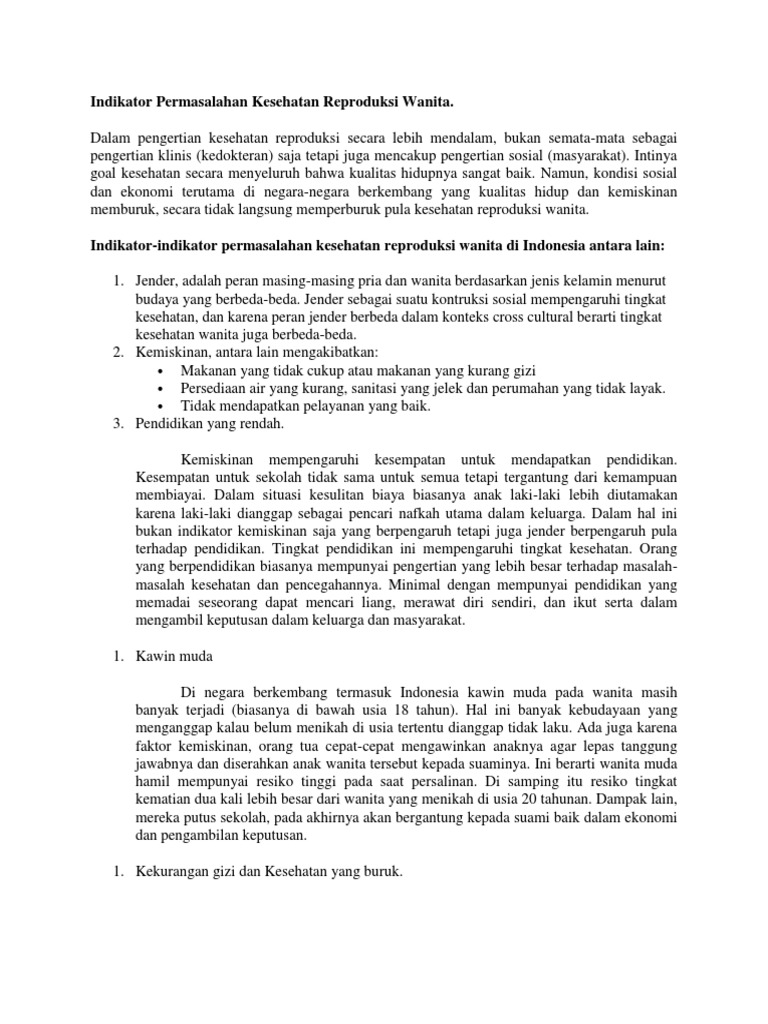 Definisi Kesehatan Reproduksi Wanita Adalah : Berdasarkan konferensi wanita sedunia ke iv di beijing pada tahun 1995 dan konferensi kependudukan dan pembangunan di cairo tahun 1994 sudah disepakati perihal.