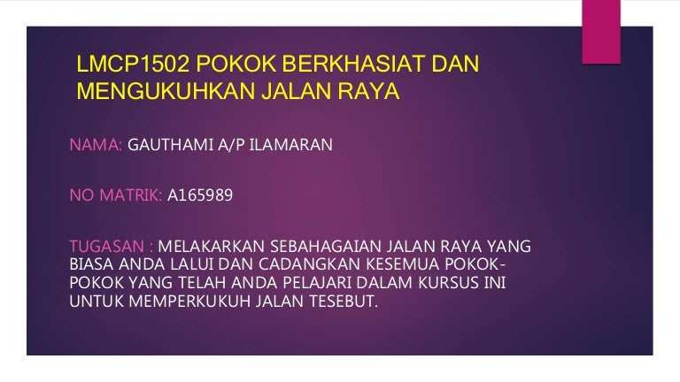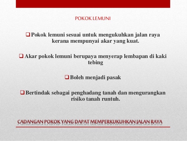 POKOK BERKHASAT MENGUKUHKAN JALAN RAYA from image.slidesharecdn.com Semua itu adalah aset berharga. Bila mood deko sampai, baik kau layan sebaiknya. Walaupun duk kat kuarters namun aku usahakan juga supaya rumah ku kembali berseri ngn pokok bunga dan juga pokok keperluan dapur. Dan yang menarik, pokok kurma di putrajaya pernah menjadi bualan hangat kerana telah mula berbuah pada tahun 2018 yang lepas. Bunga raya, juga dikenali sebagai bunga sepatu dan kembang sepatu ( hibiscus rosasinensis ) ialah sejenis tumbuhan berbunga sepanjang tahun dalam genus hibiscus yang sering ditanam sebagai pokok hiasan. Keistimewaan bunga raya sebagai bunga hiasan dan bunga kebangsaan. Kemalangan jalan raya mengakibatkan ekonomi malaysia kehilangan rm9 bilion tahun lalu dari segi kehilangan nyawa dan cedera. Best for you o r g a n i c s c o m p a n y 4 pokok bidara * mempunyai akar yang serabut dan agresif * sesuai ditanam di menjadi pasak di kawasan slip circle * pokok ini juga sesuai dijadikan sebagai hiasan di jalan raya.